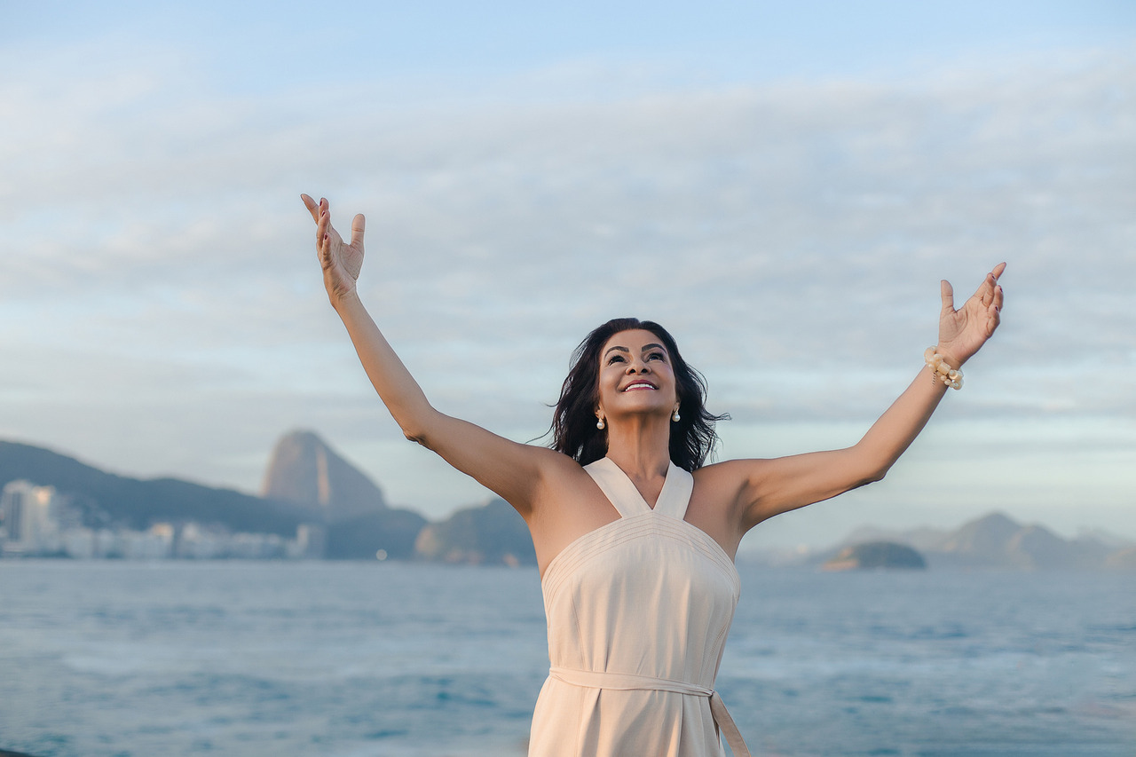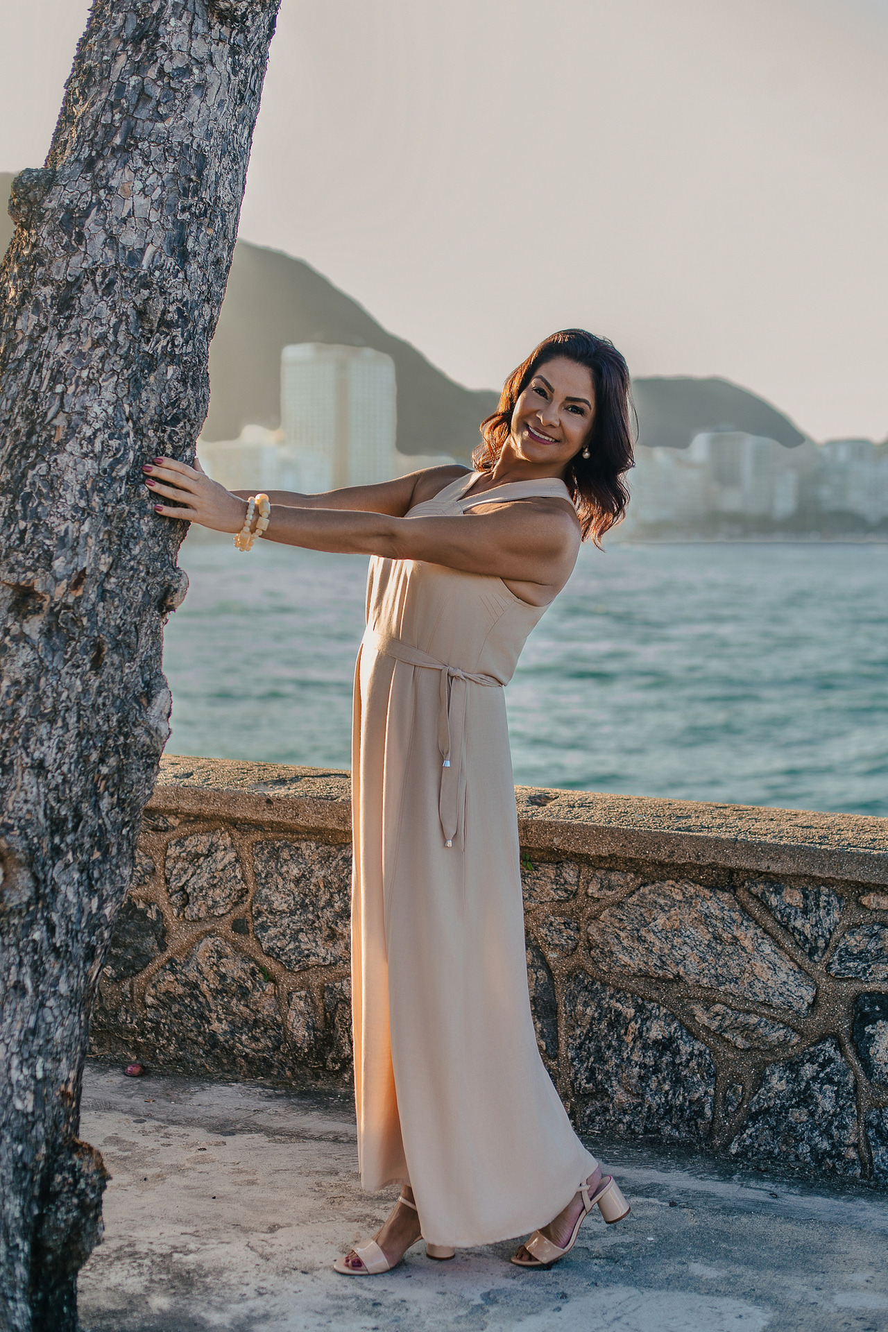 🌹 Aos 65 anos, Wanda veio de Belo Horizonte fazer um ensaio conosco, escolheu comemorar a vida de uma forma inesquecível: um ensaio no Forte de Copacabana, com o pôr do sol como cenário e toda a energia de quem carrega consigo história, força e beleza.